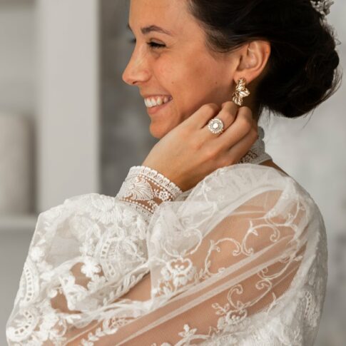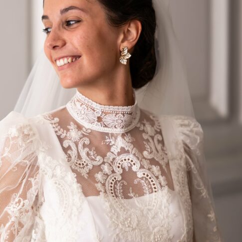 Robe de Clémentine Robe en jacquard fleuri, avec des petites manches courtes. Voile de tulle brodé @larcabarcelona Chaussures @flordeasoka Photos @emmanuelledemontgrand