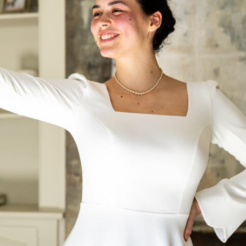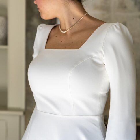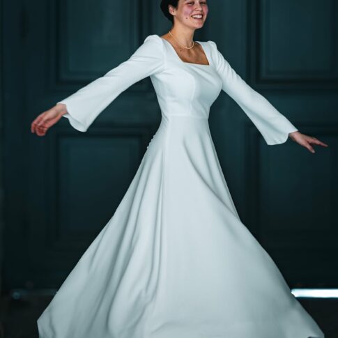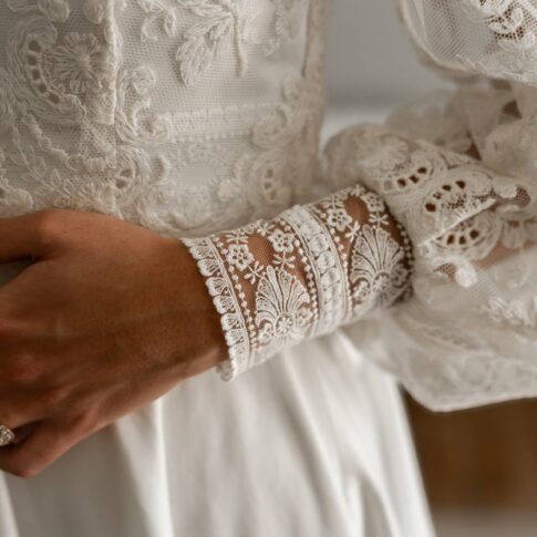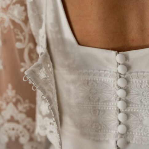 Robe d’Albane Robe en crêpe de soie avec un haut entièrement en dentelle. Les manches raglan sont amovibles. Photos @emmanuelledemontgrand