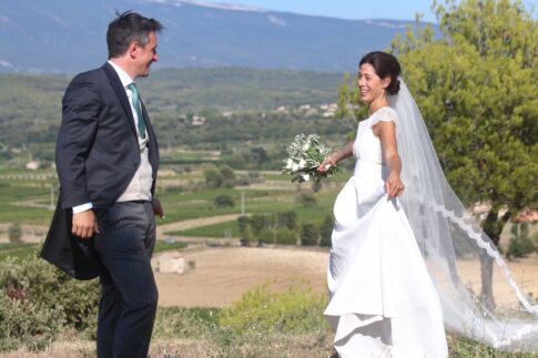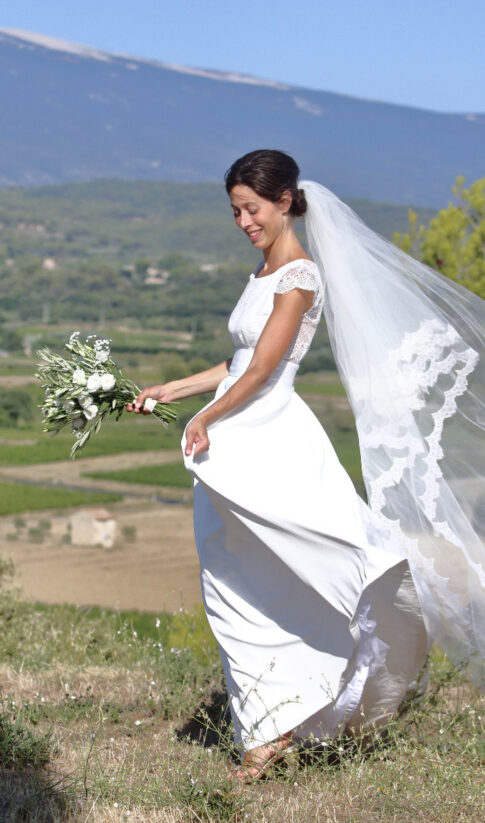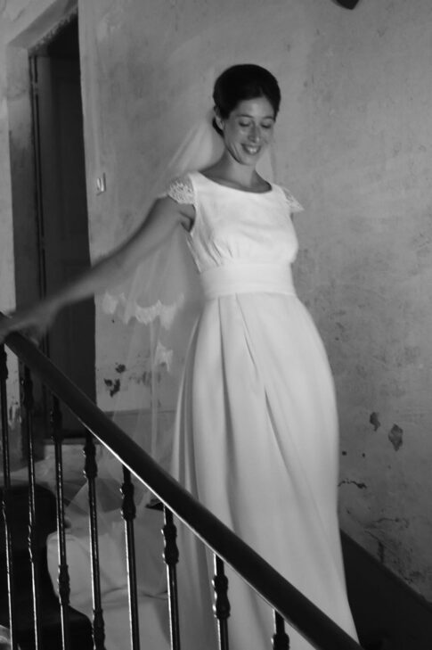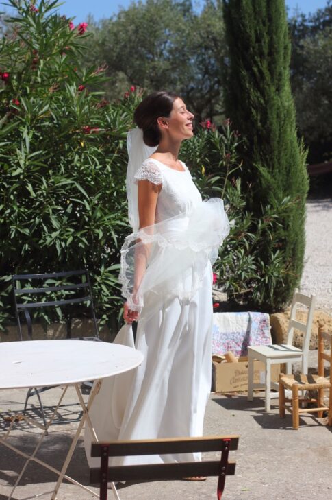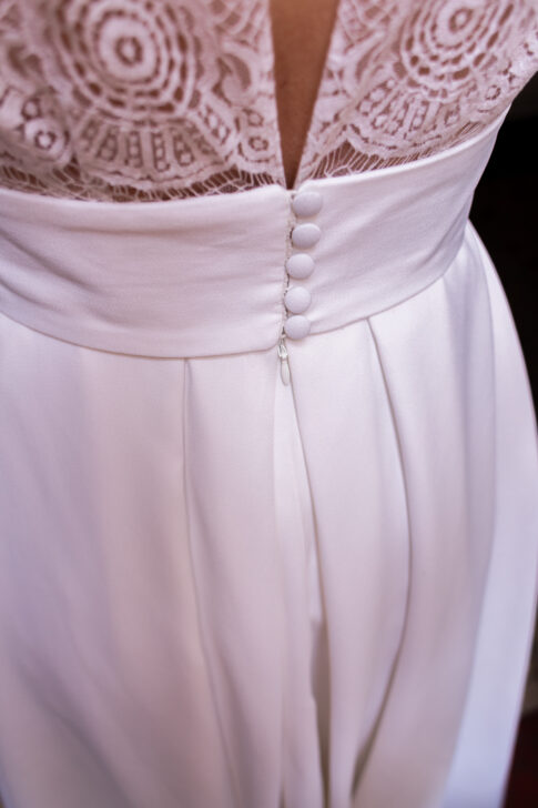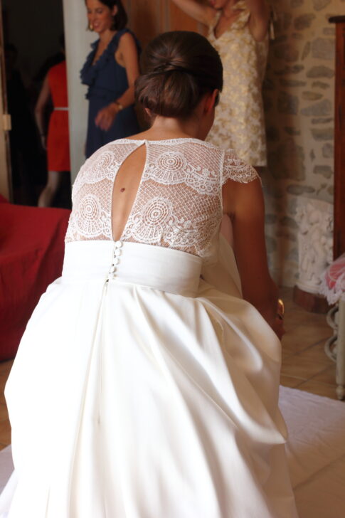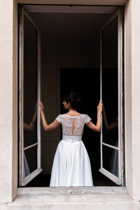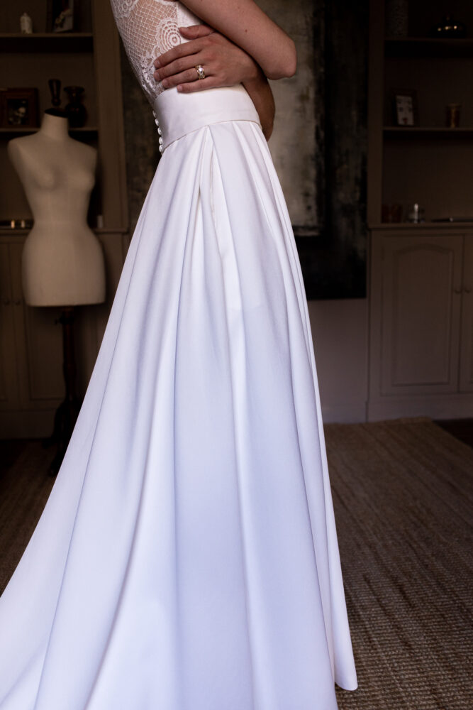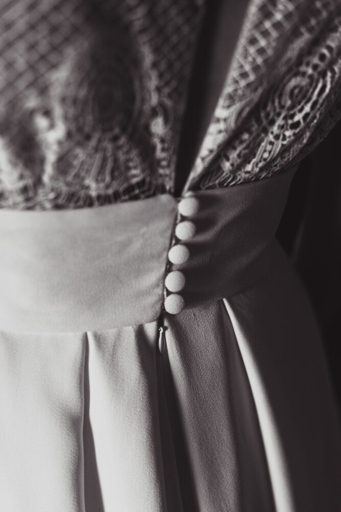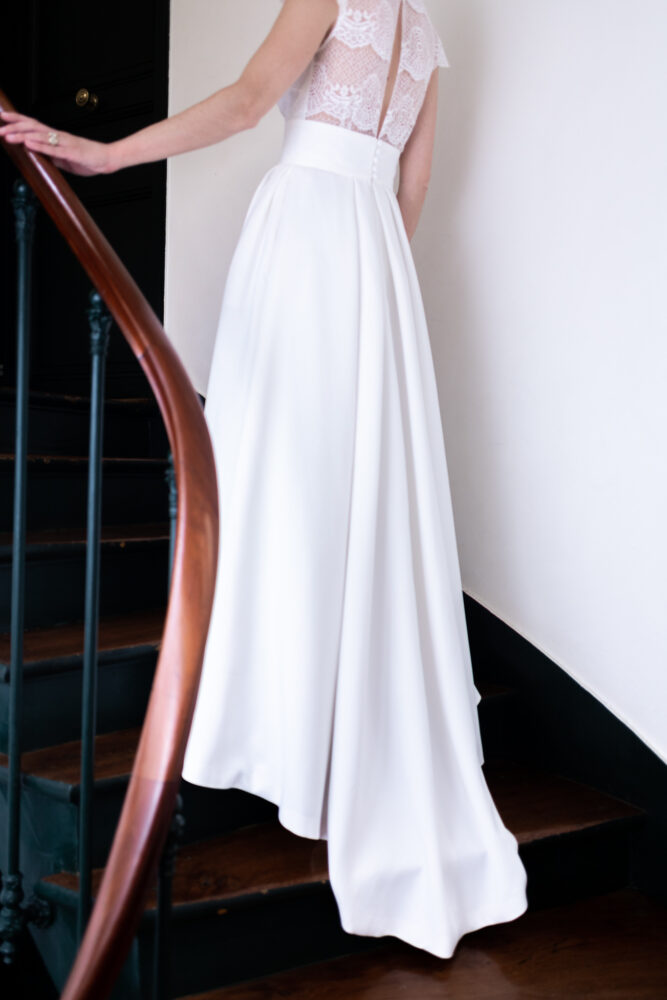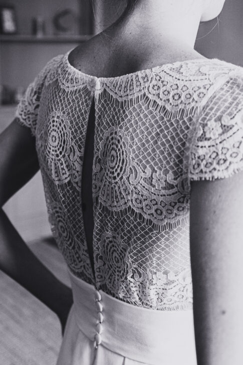Robe ceinturée avec un top en dentelle de Calais « Art déco ».