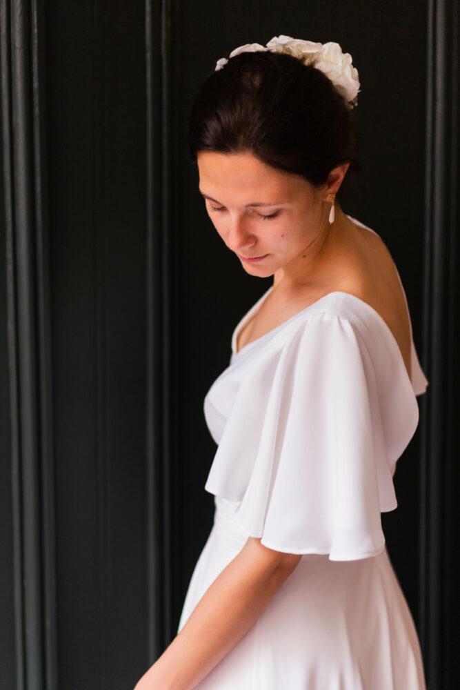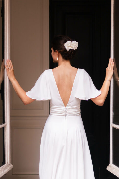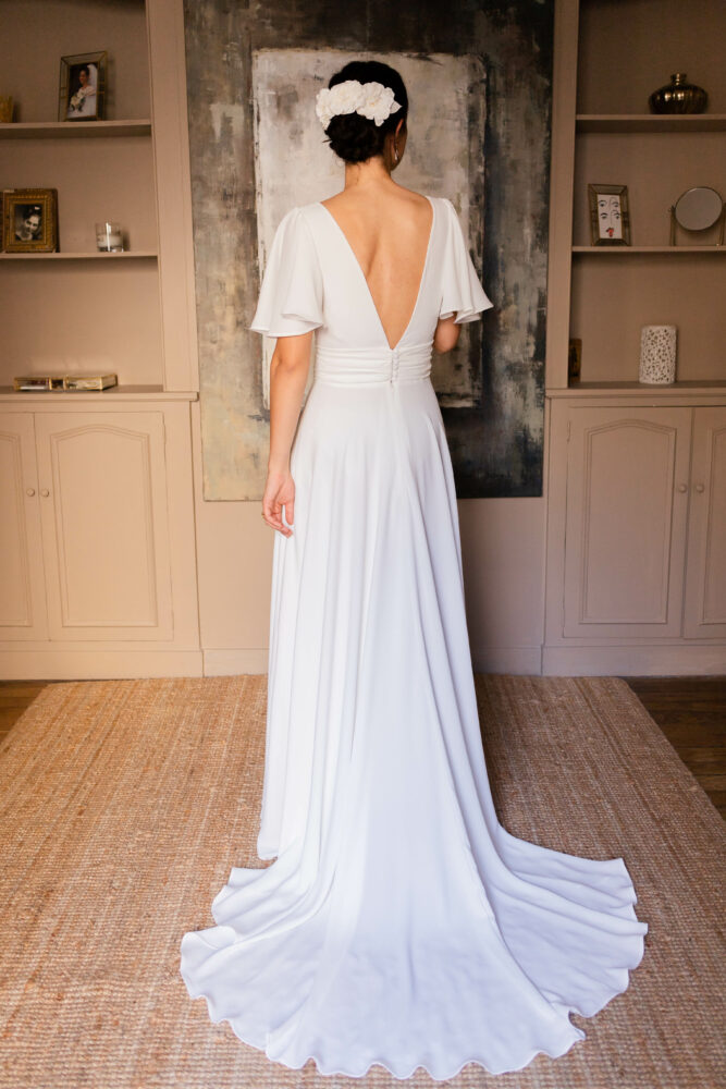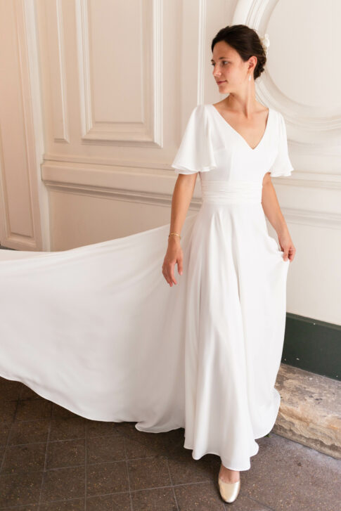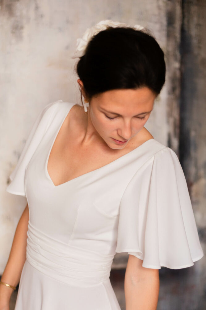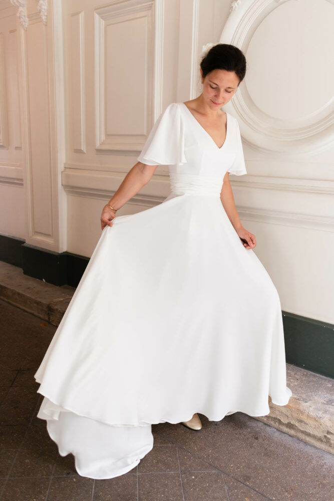 Robe en crêpe fluide très ample avec des manches tulipes.