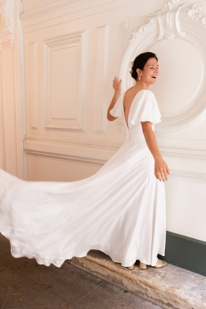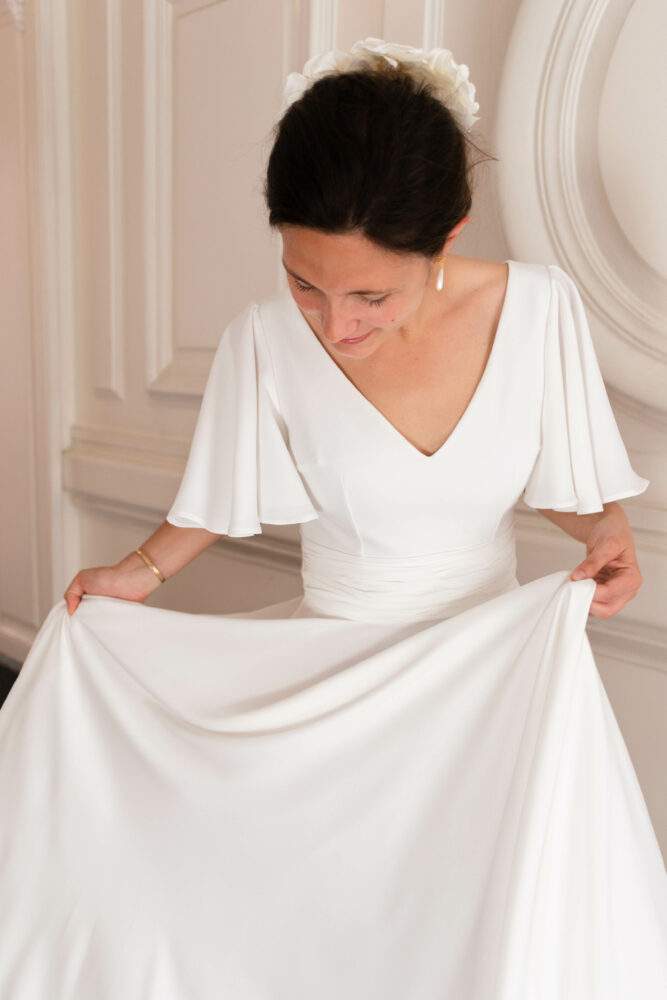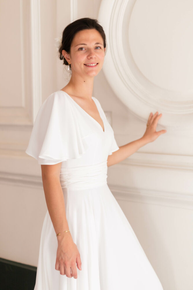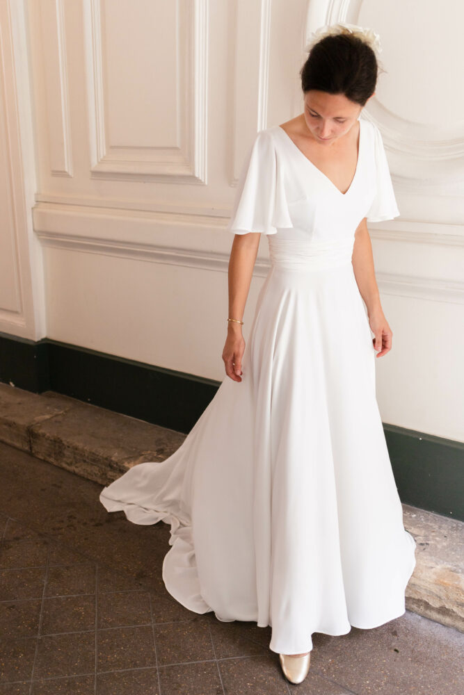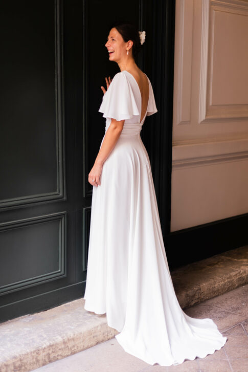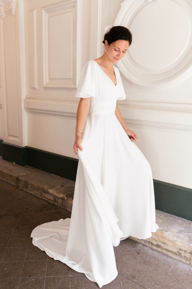 Robe en crêpe fluide très ample avec des manches tulipes.