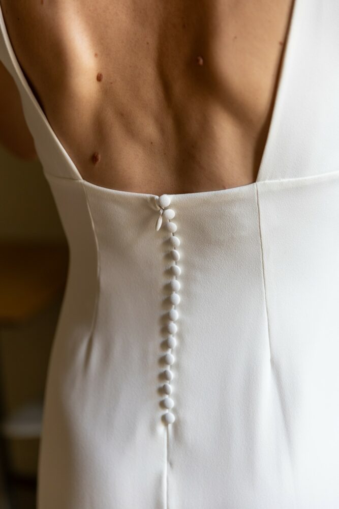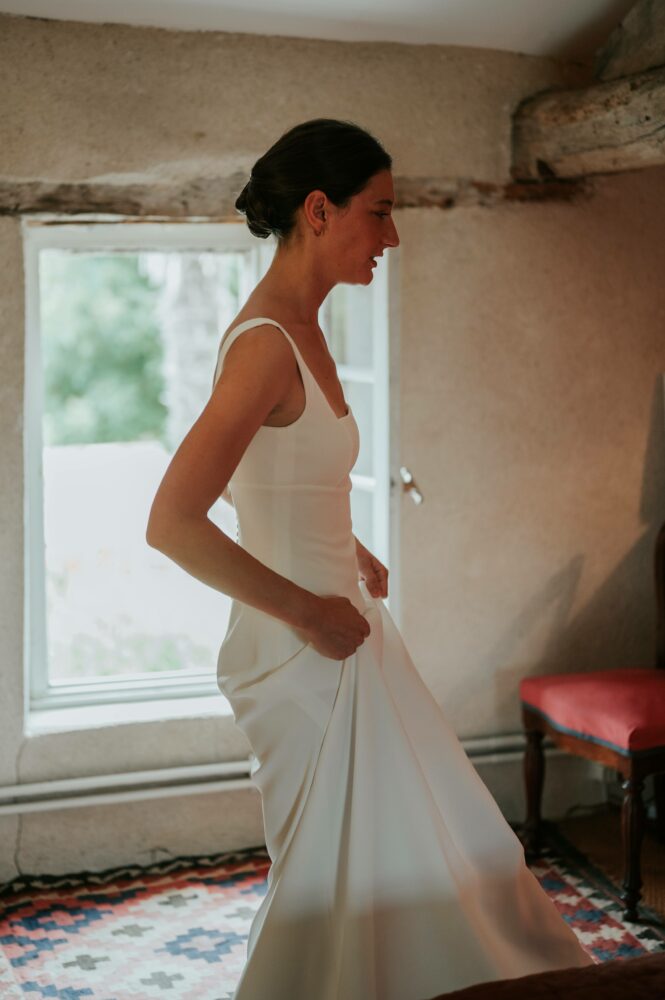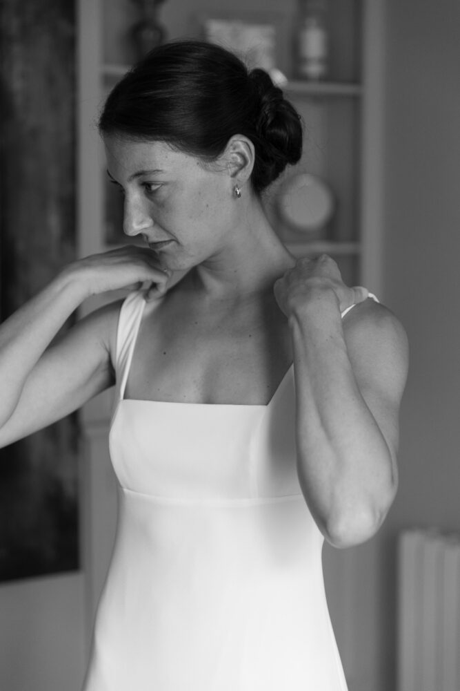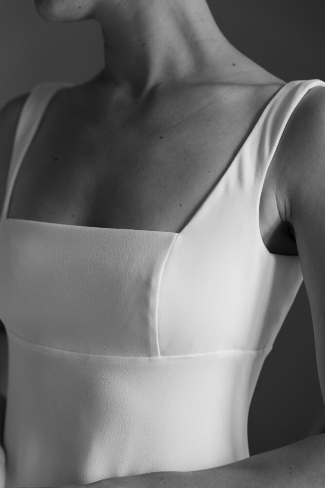 Robe en crêpe fluide avec une encolure carrée et des fines bretelles.
