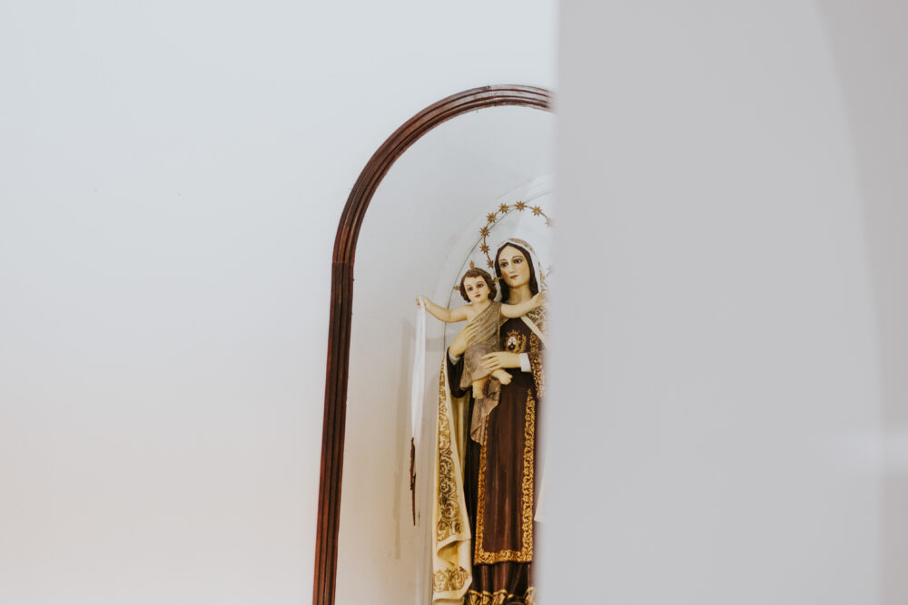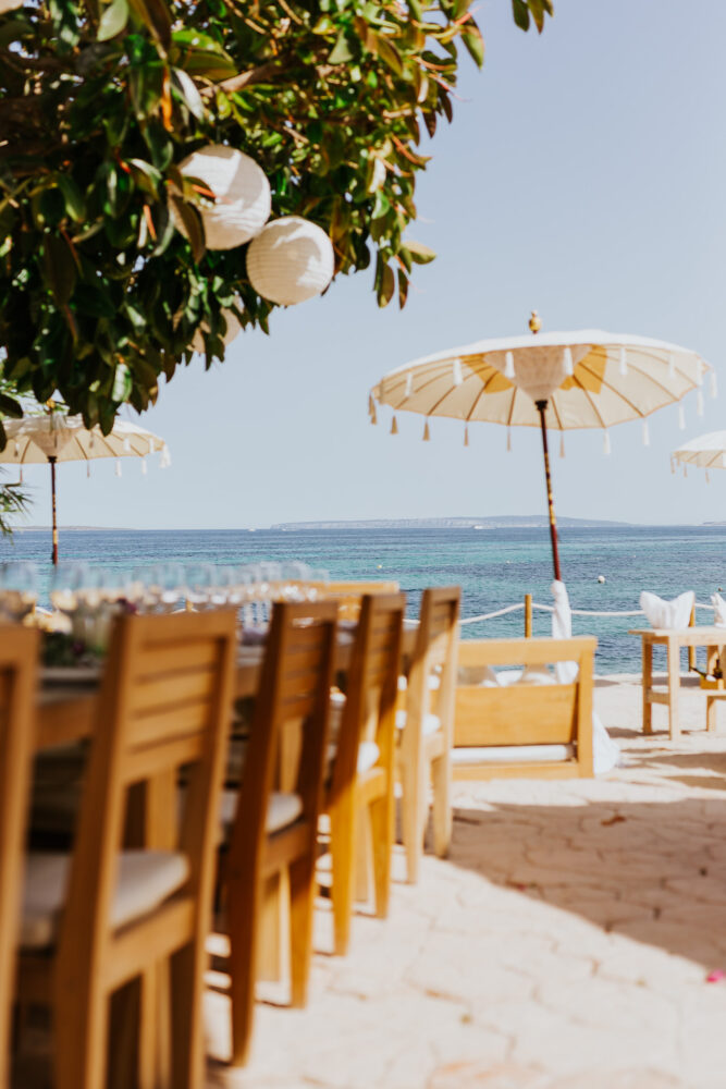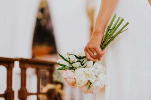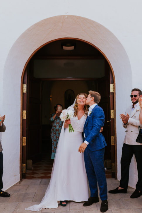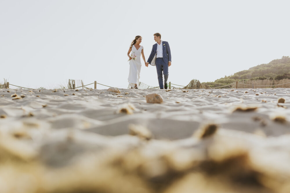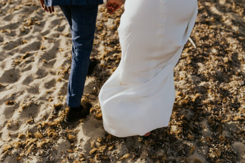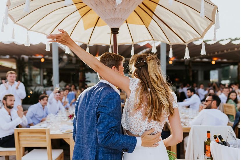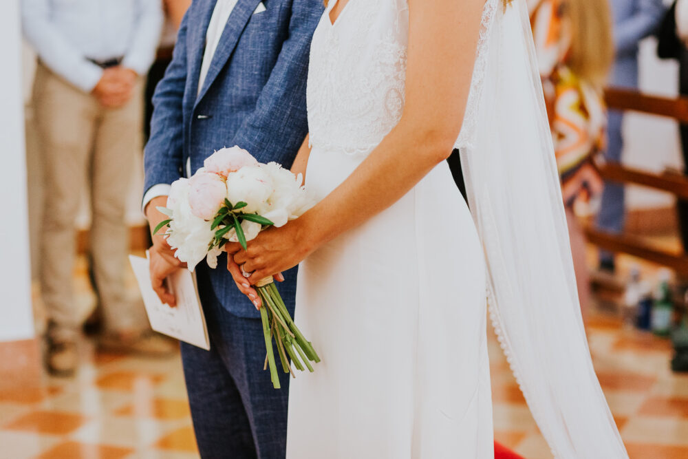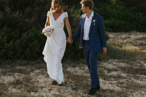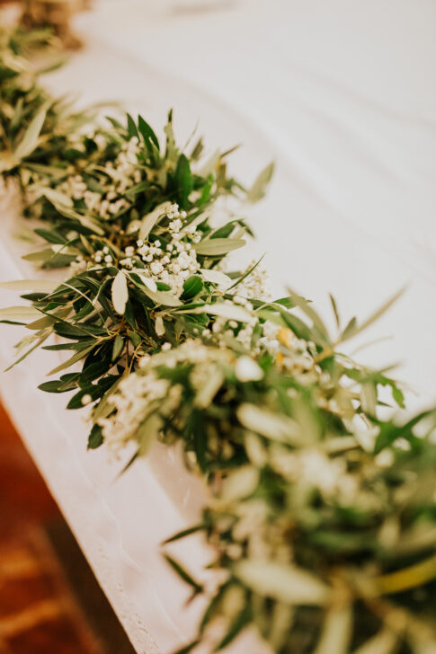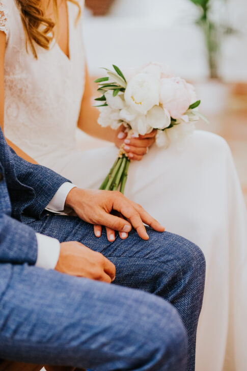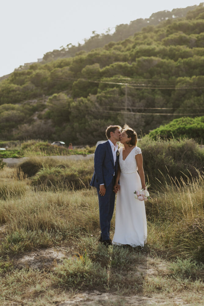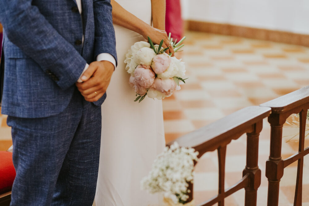Haut séparé en tulle brodé, manches courtes et boutonné dans le dos.