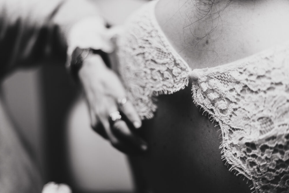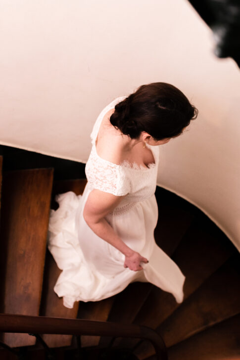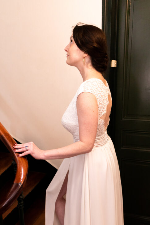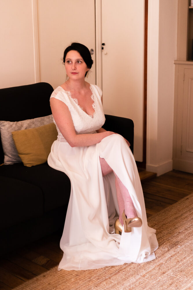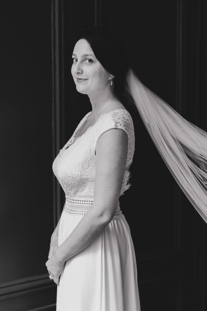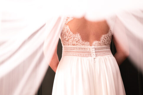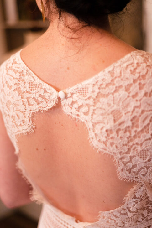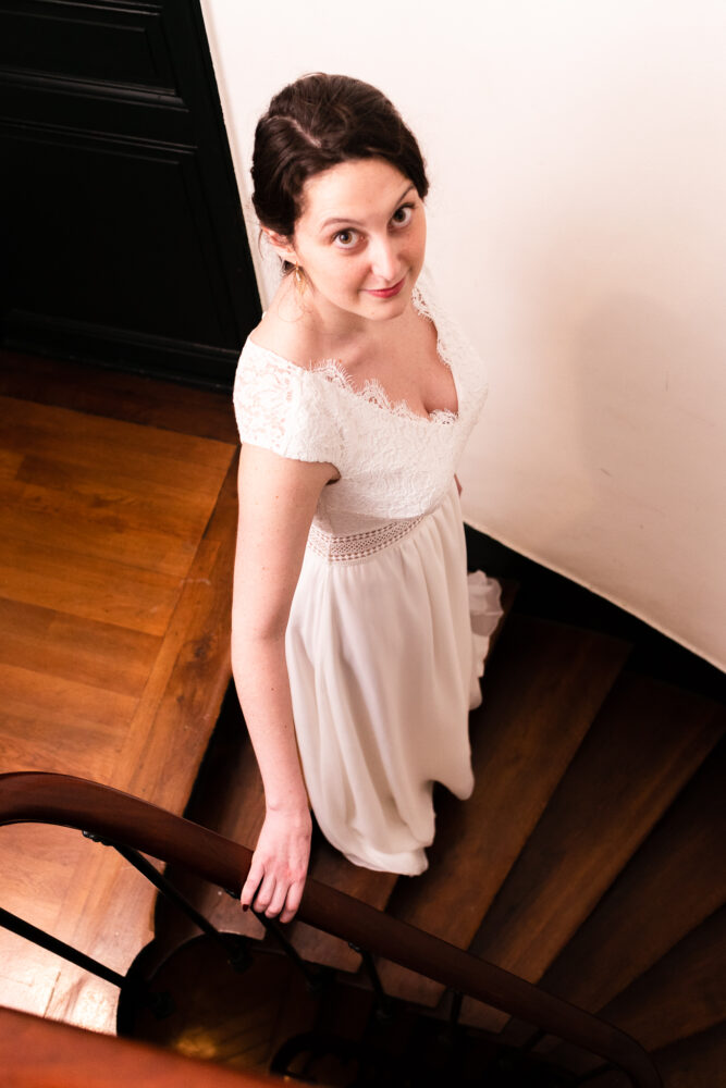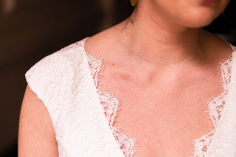 Robe avec un haut en dentelle de Calais et une ceinture en guipure.