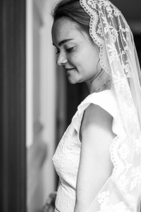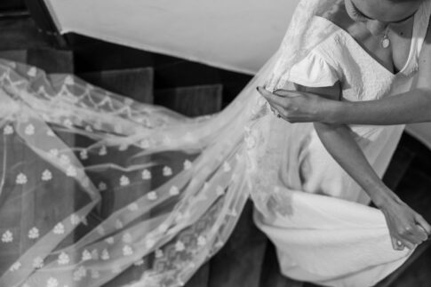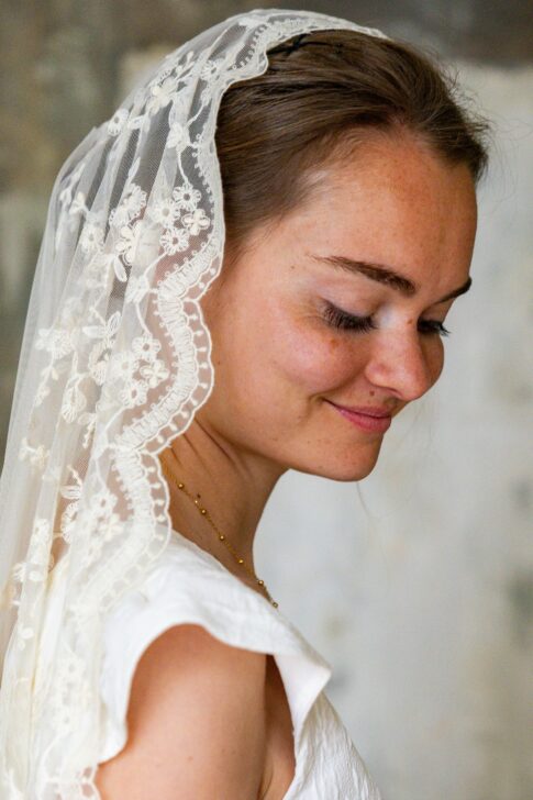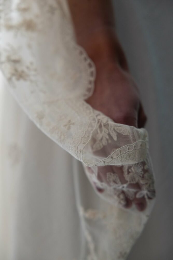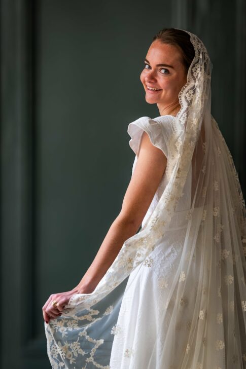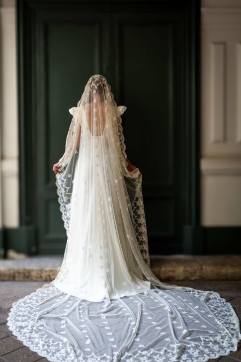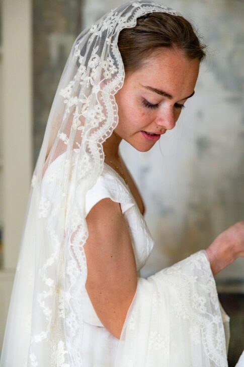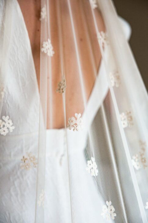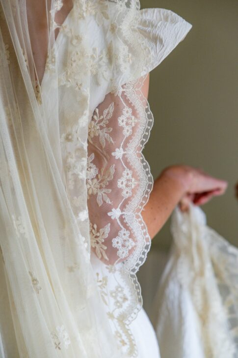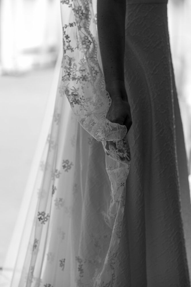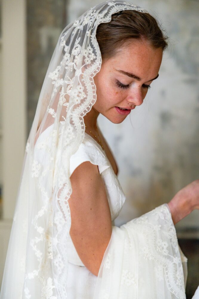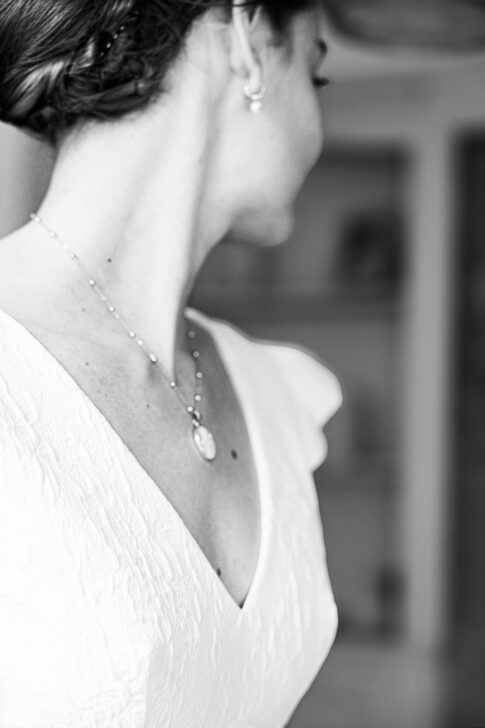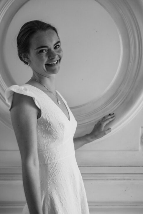 Robe en jacquard fleuri, avec des petites manches courtes.