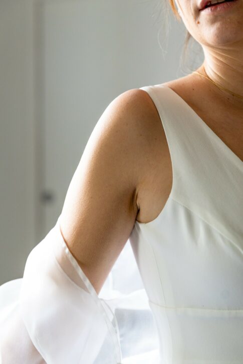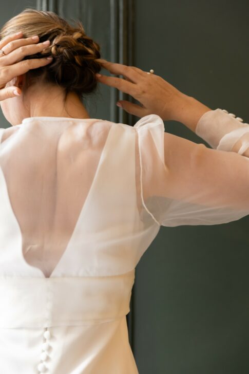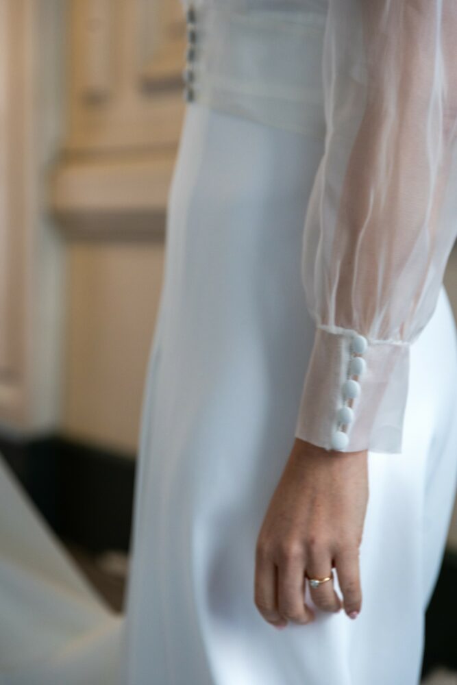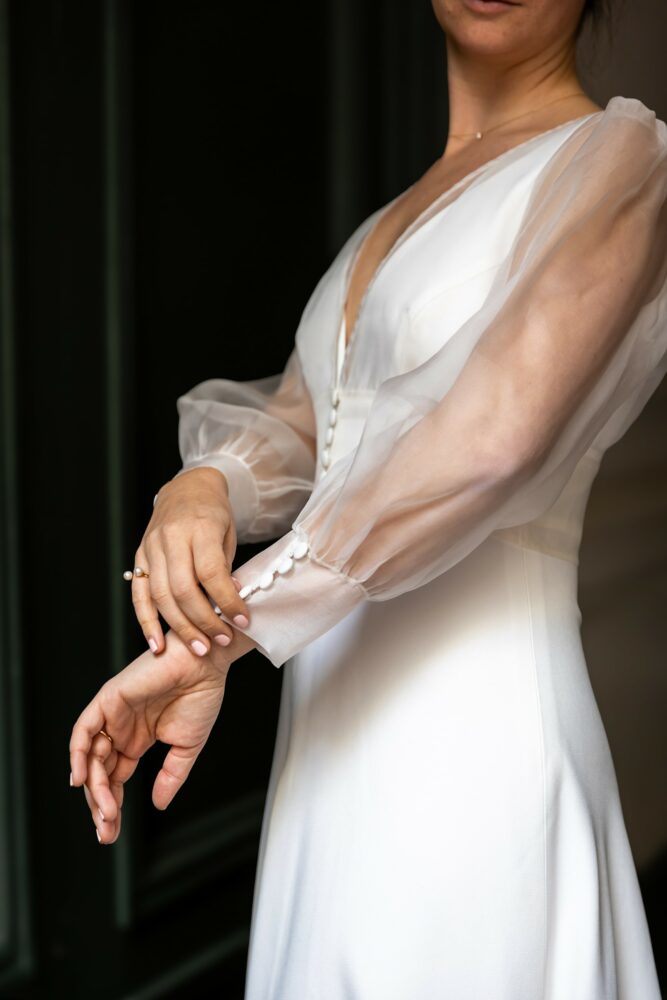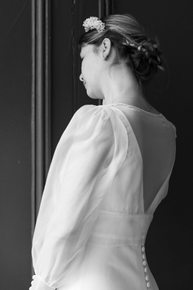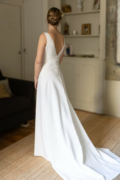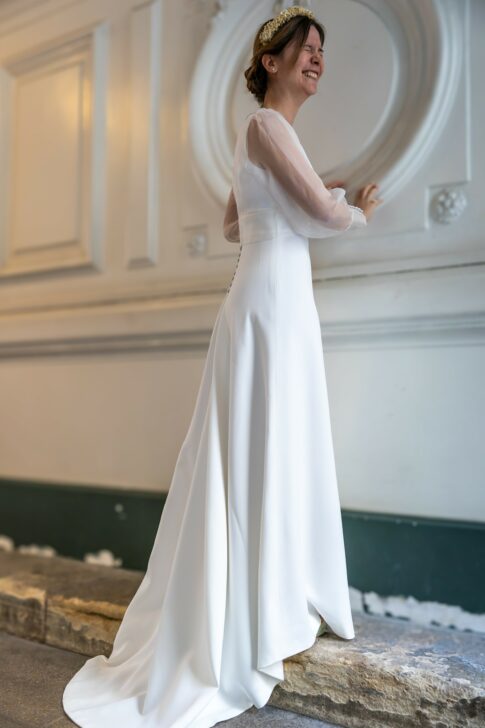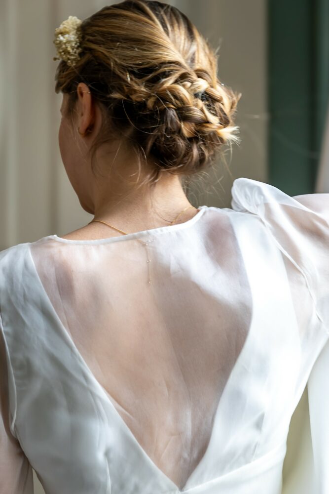 Robe en crêpe lourd de viscose, avec un top en organza par dessus.