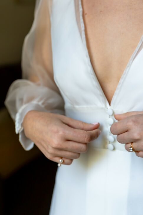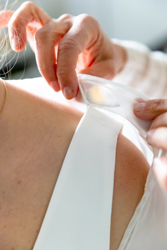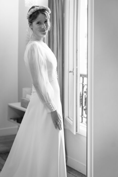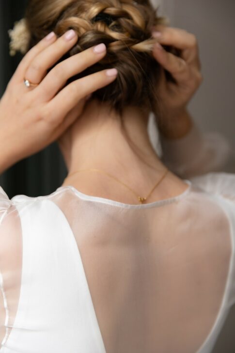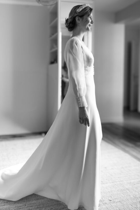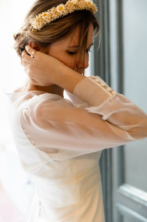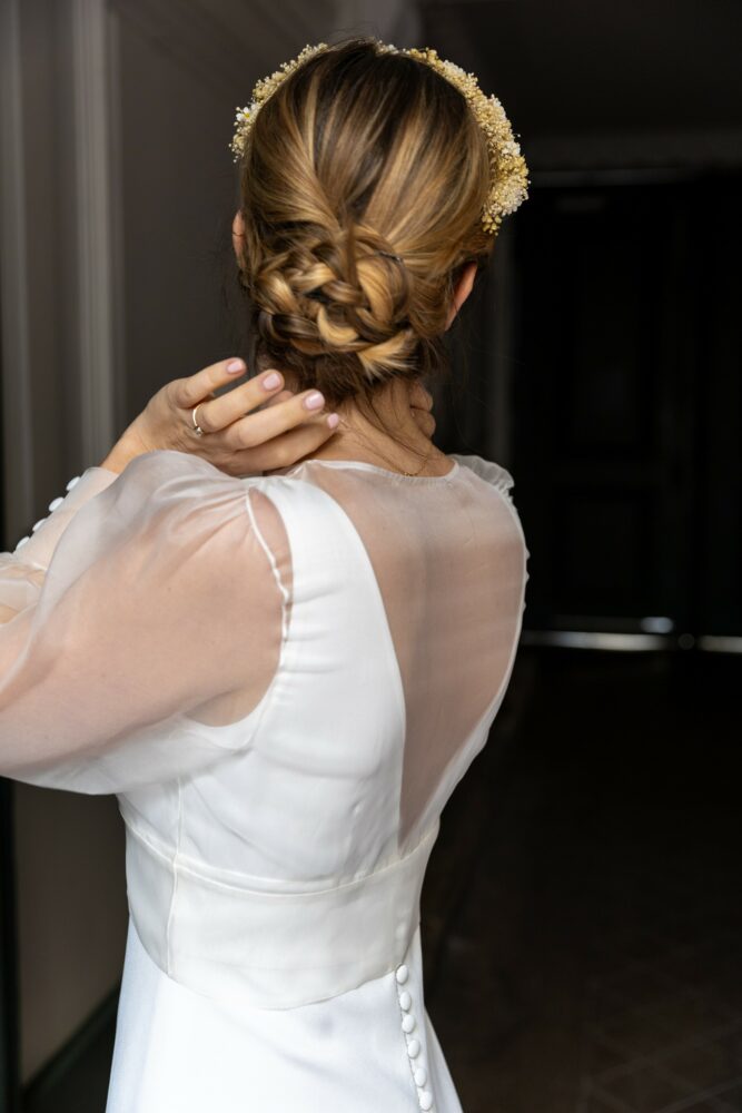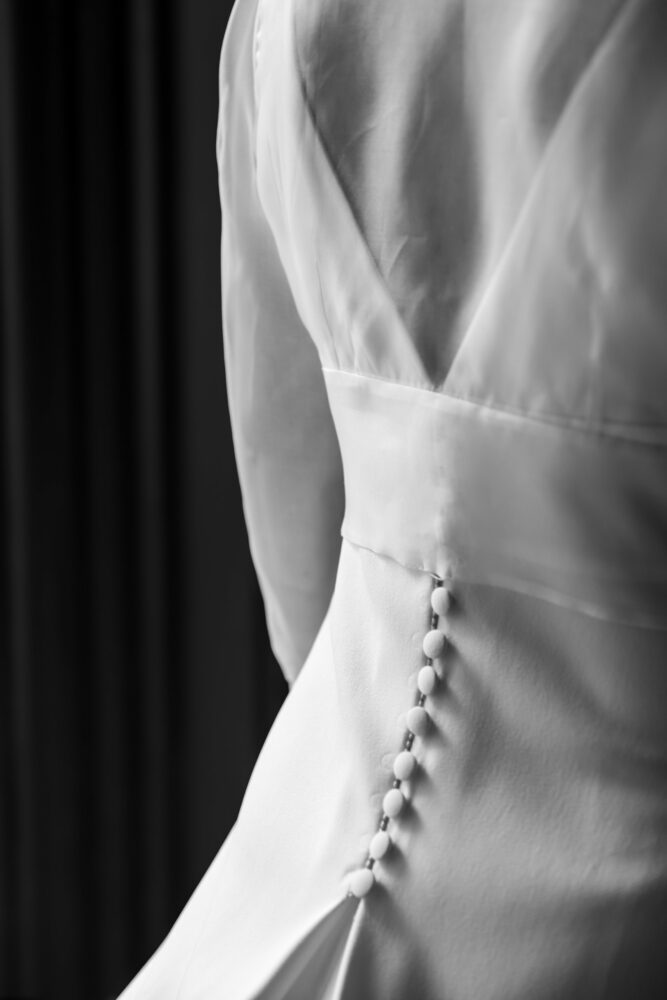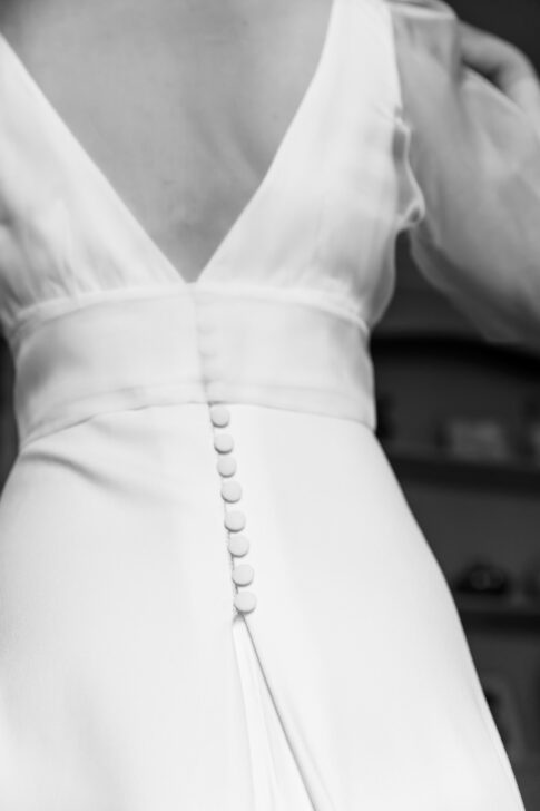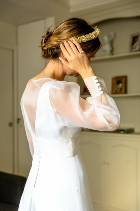 Robe en crêpe lourd de viscose, avec un top en organza par dessus.