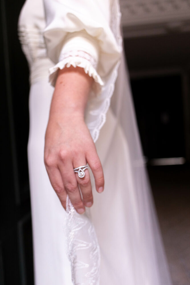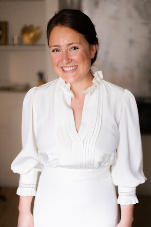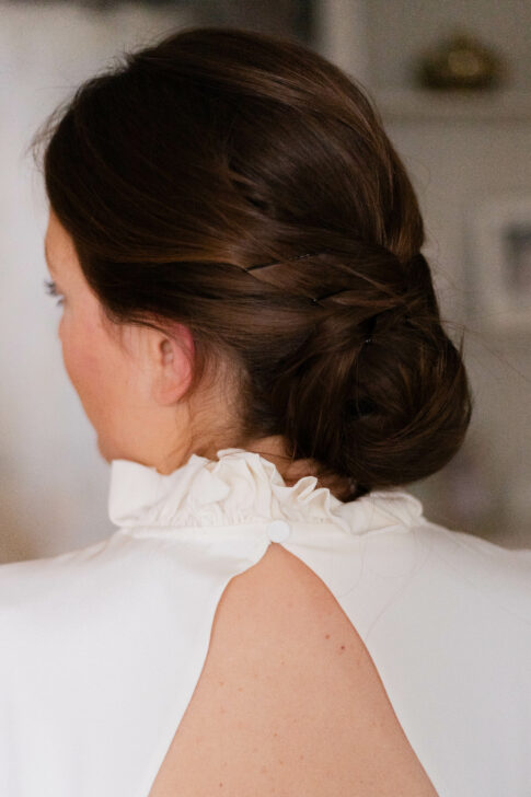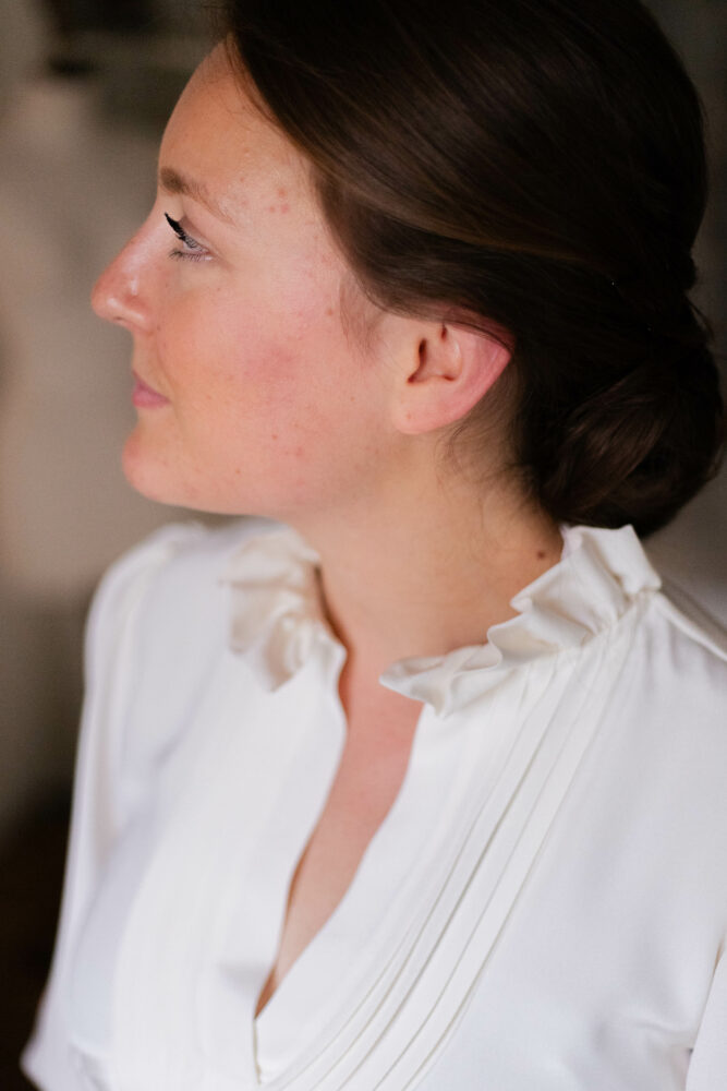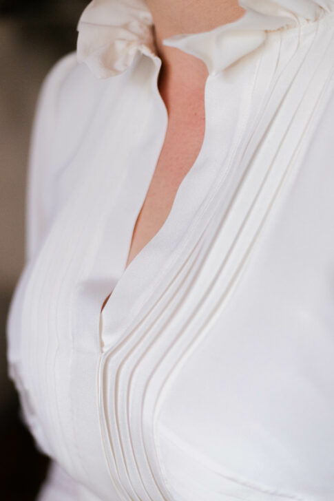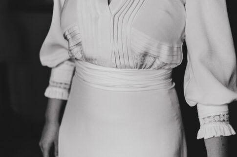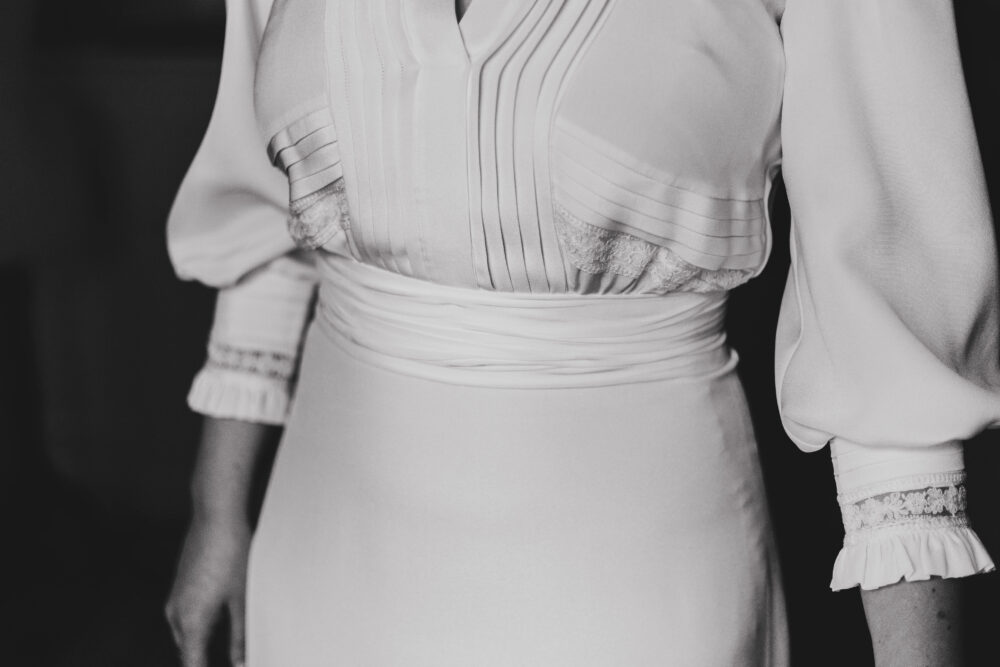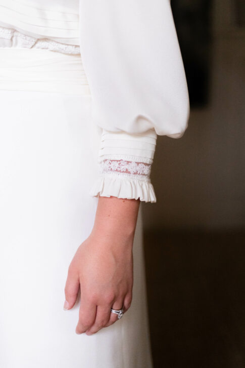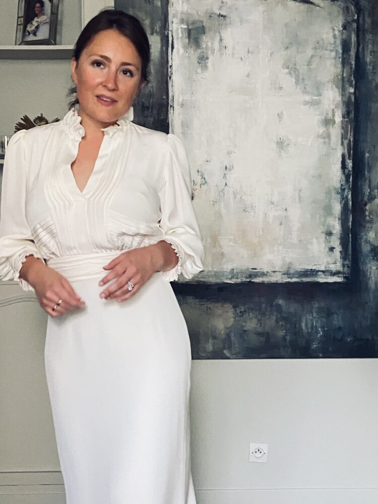 Dans le dos, des pans en crêpe Georgette de soie amovibles on été rajoutés.