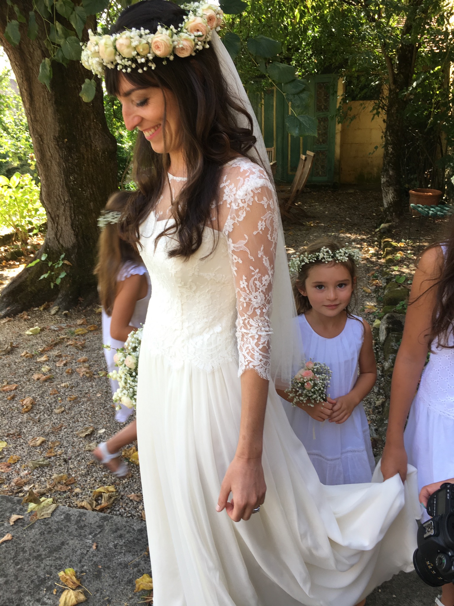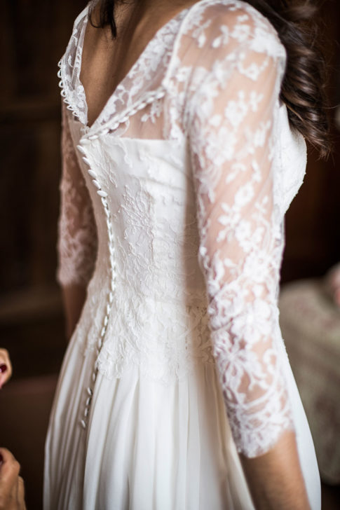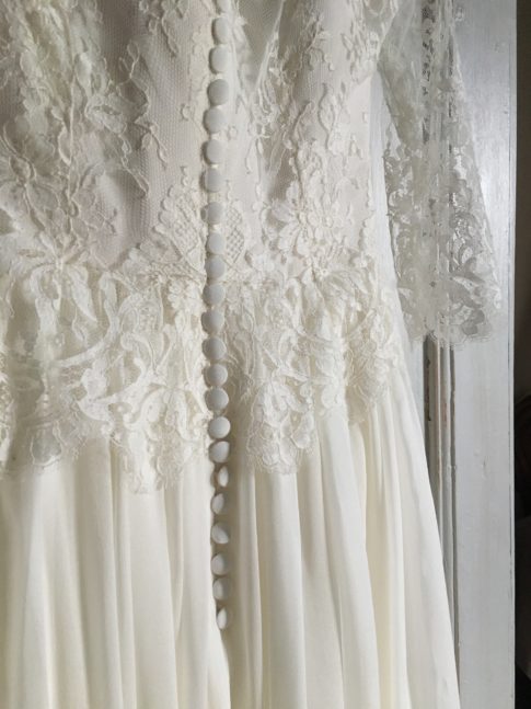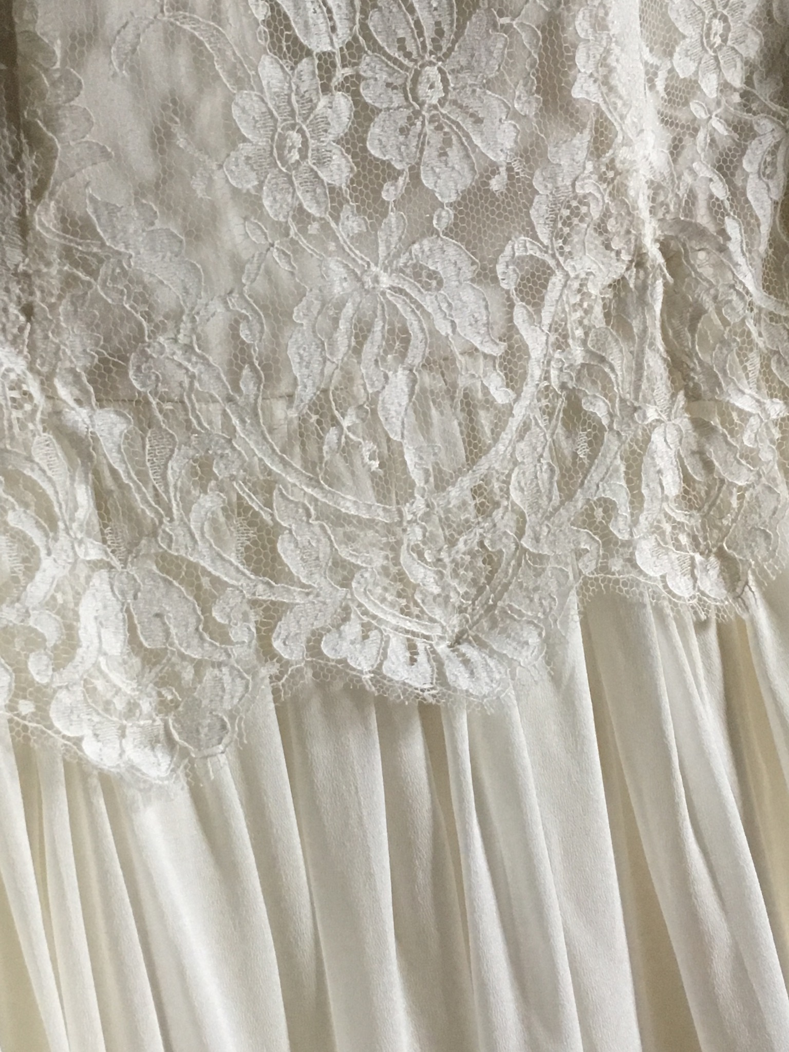 Robe bustier en crêpe de soie, top en dentelle de calais et jupe en mousseline de soie