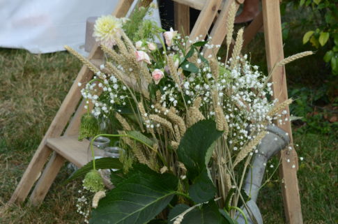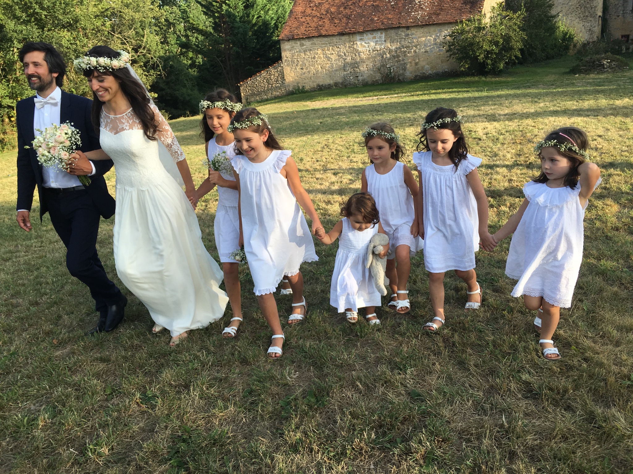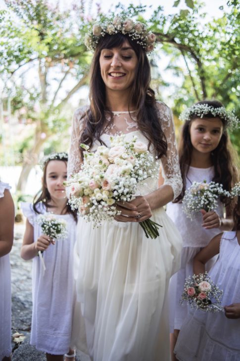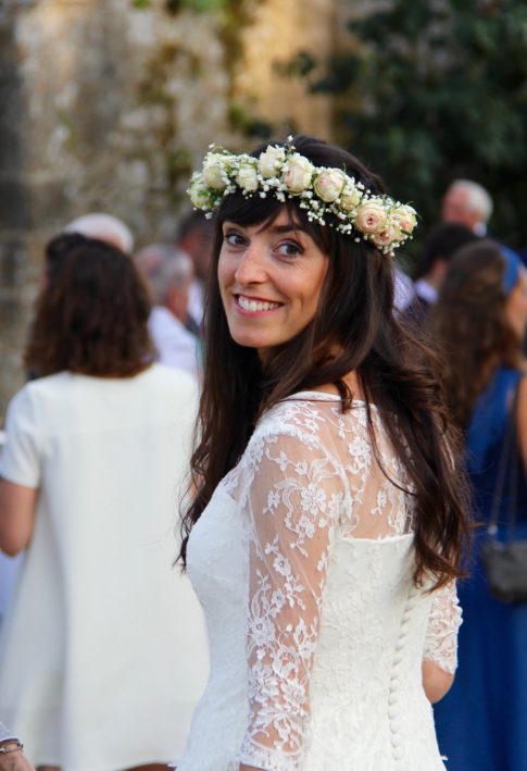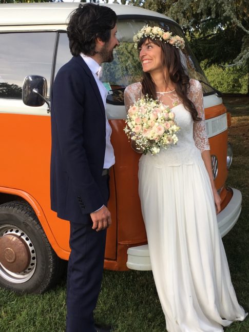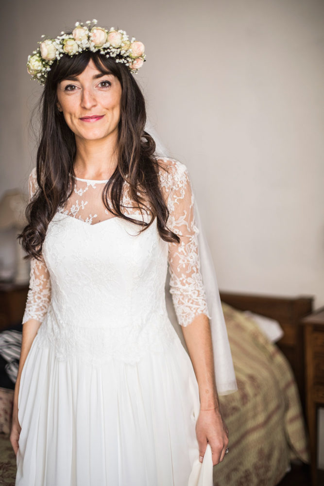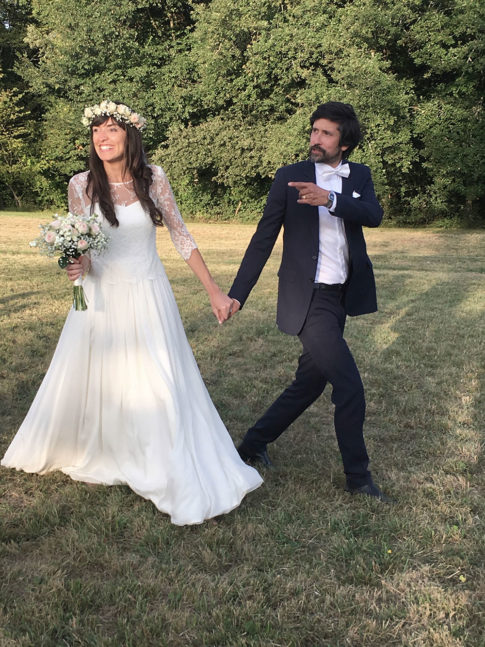 Robe bustier en crêpe de soie, top en dentelle de calais et jupe en mousseline de soie