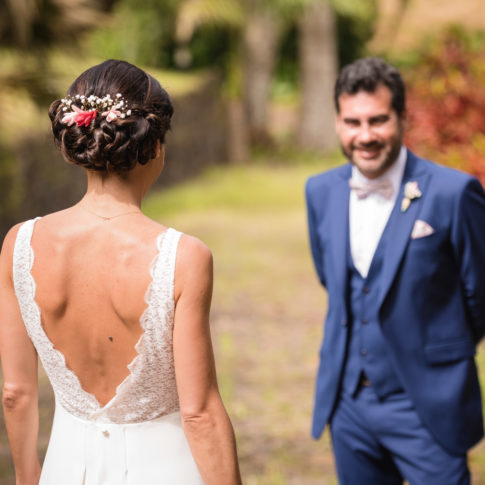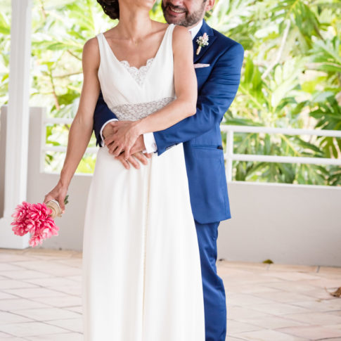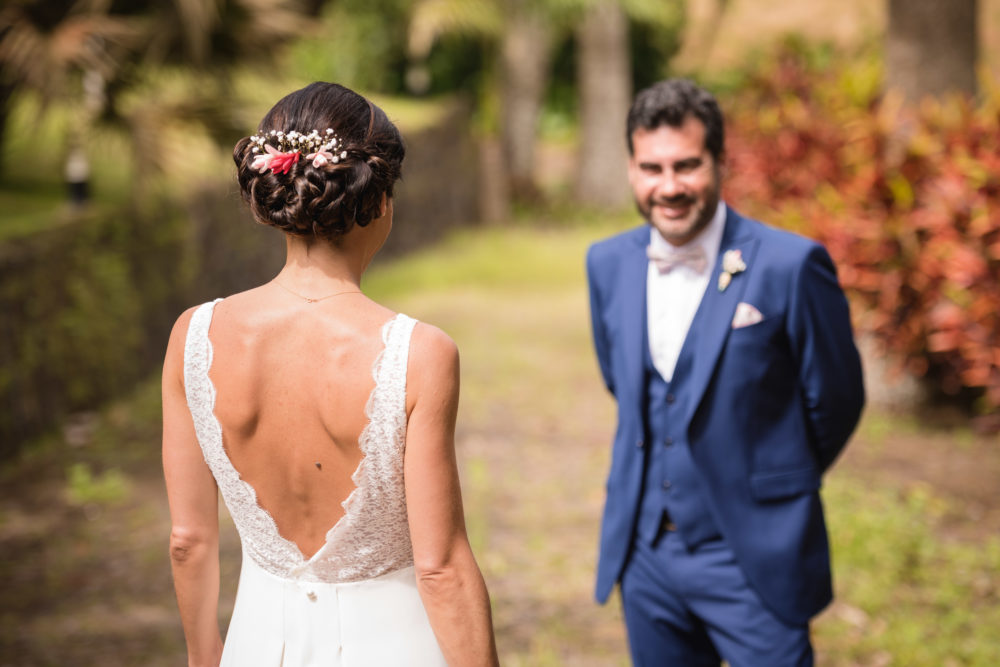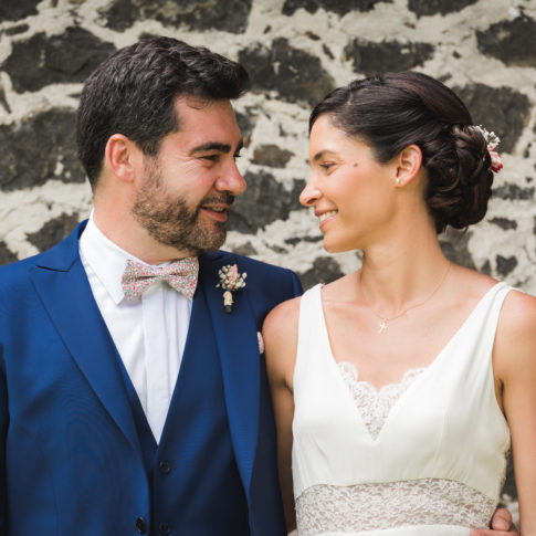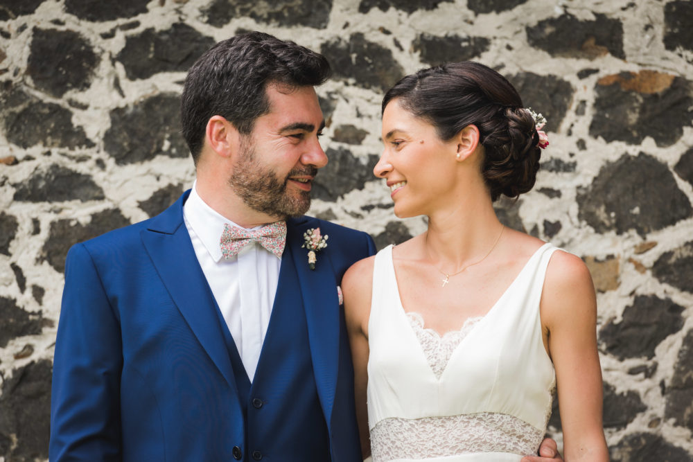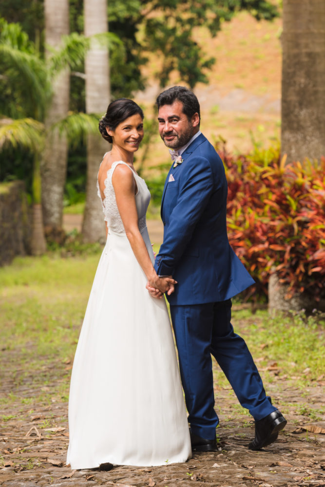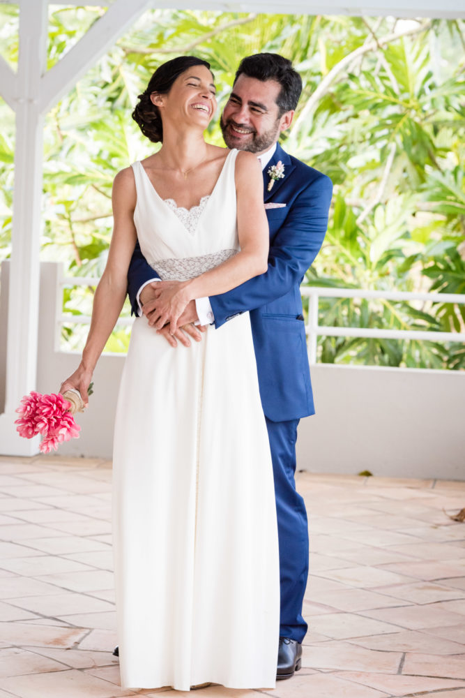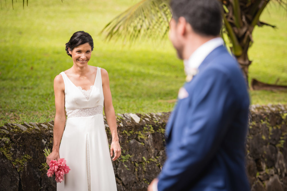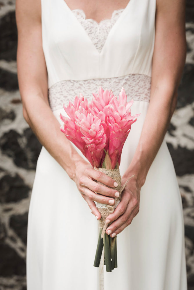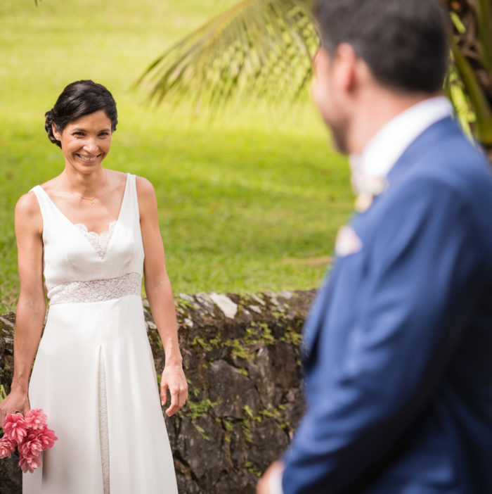 Robe en crêpe de soie, dentelle de Calais « mille fleurs », jupe avec pli creux, boutons perles au dos