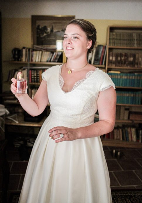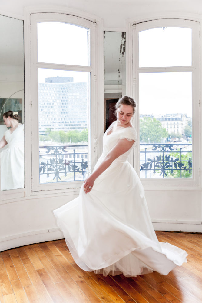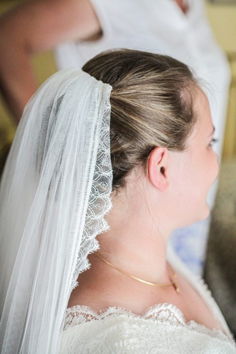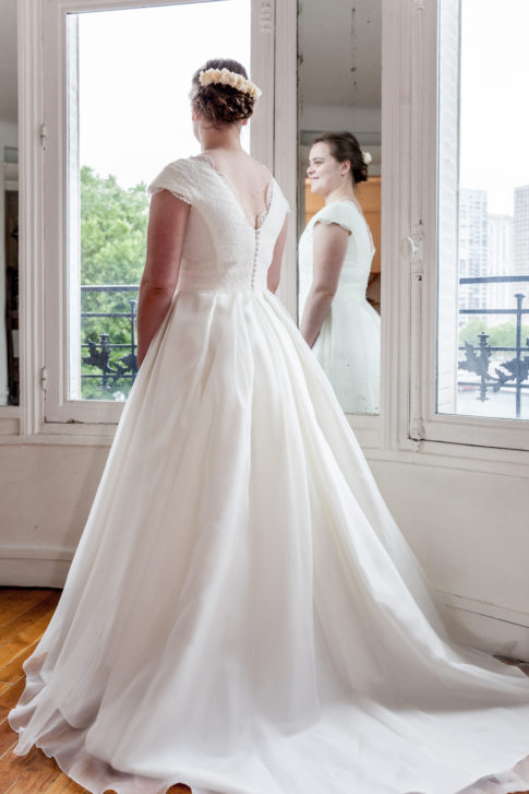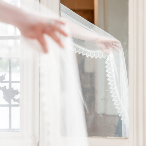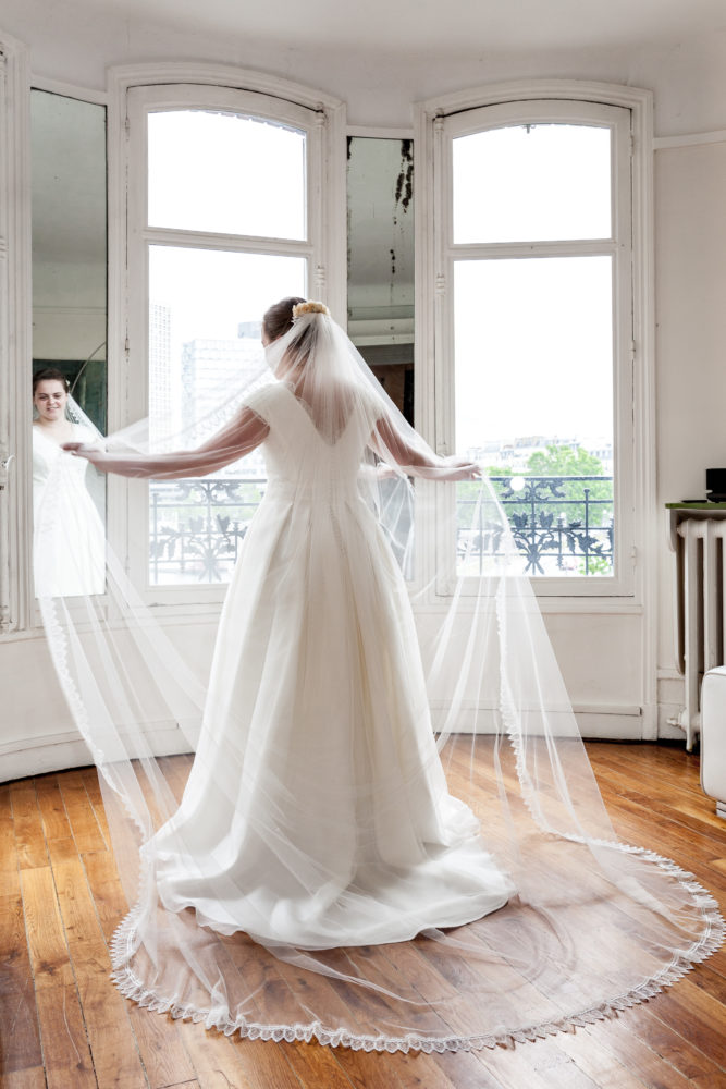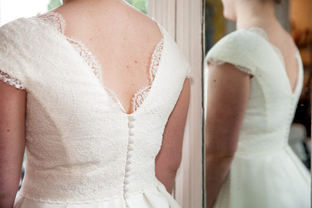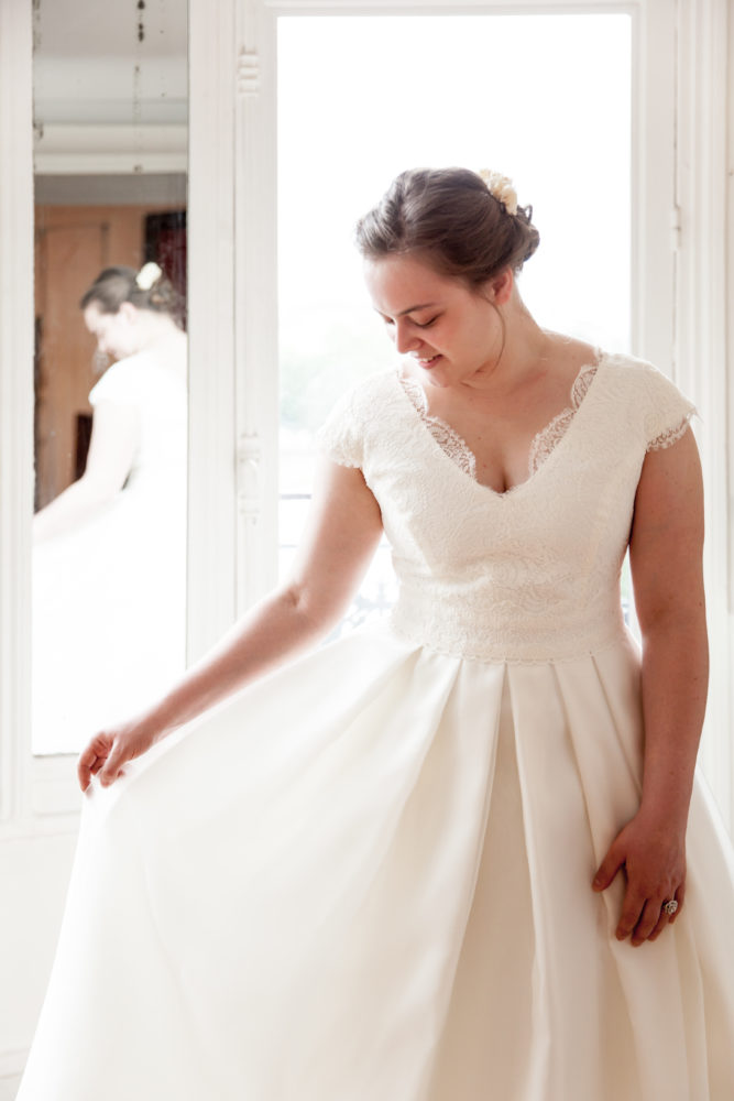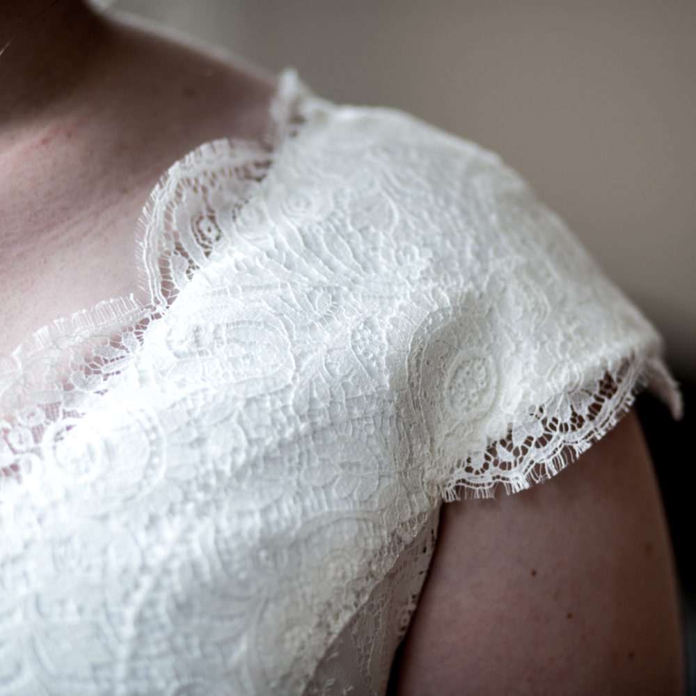 Haut en dentelle de Calais, festonnés sur l’encolure et les manches.