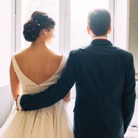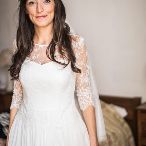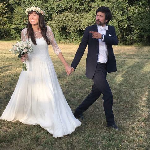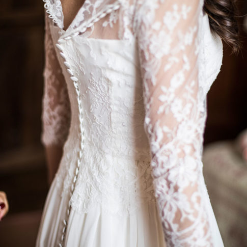 Robe de Christelle Robe bustier en crêpe de soie, top en dentelle de calais et jupe en mousseline de soie