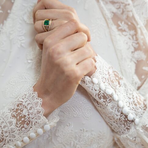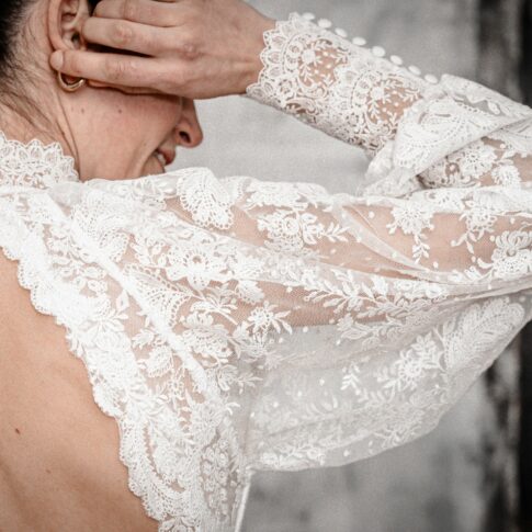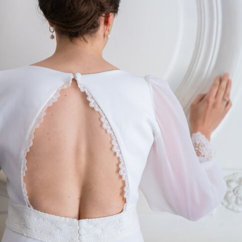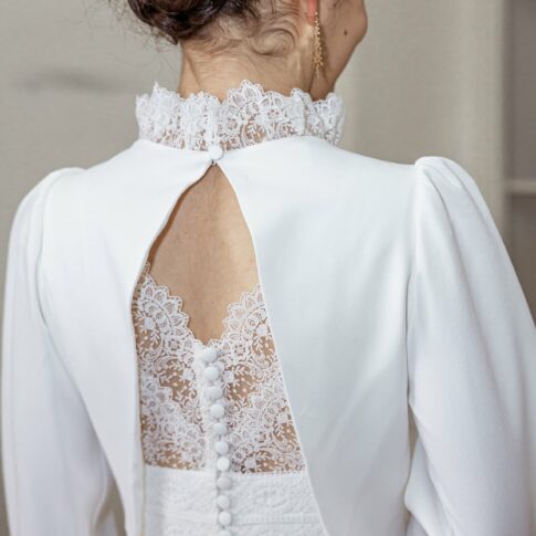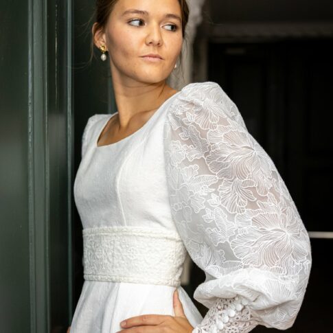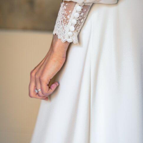 Robe d’Albane Robe en crêpe de soie avec un haut entièrement en dentelle. Les manches raglan sont amovibles. Photos @emmanuelledemontgrand