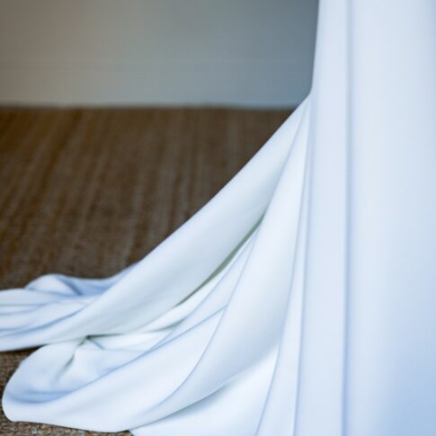 Robe de Solweig Jupe en double mikado de soie et haut entièrement froncé de smocks, en coton et soie. Voile de famille recomposé pour s’adapter à la robe. Photos @emmanuelledemontgrand